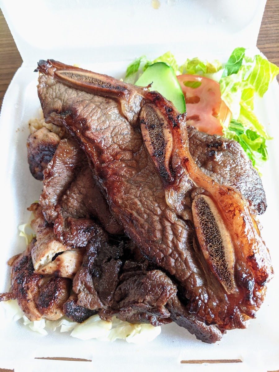 The food was bomb here! Most people came to just pick up their food but we sat at a table outside and enjoyed ours fresh. We would highly recommend you try the orange chicken and bbq mixed plate. The meats were tender, the orange chicken was saucy, the rice has a great texture, and the Mac salad is yummy. It’s not dry or too plain. I enjoyed the gyozas too. The crunch was great on the outside and the filling was meat and veggies.